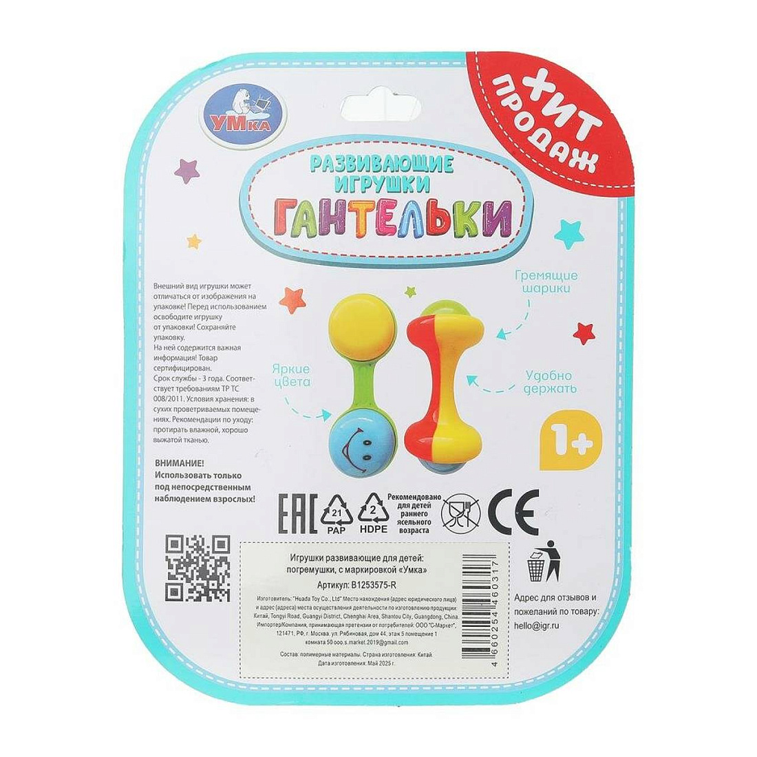 Развивающие погремушки «Гантельки» ТМ «УМка» разработана специально для малышей: