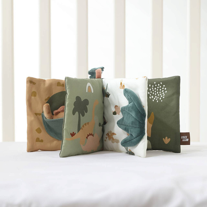 Развивающая книжка шуршалка для малышей UNIX Kids Дино / Dino создана специально для младенцев начиная с самого раннего возраста (от 0+). Эта игрушка для новорожденных объединяет в себе сразу несколько функций, направленных на всестороннее развитие ребёнка и обеспечение увлекательного досуга малышу.