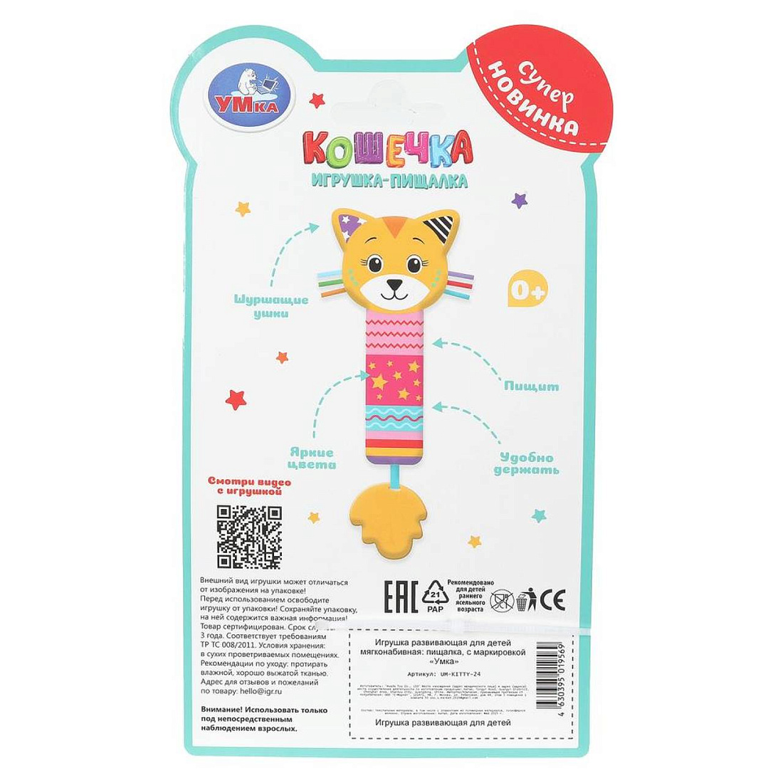 Текстильная игрушка-погремушка с пищалкой «Кошечка » ТМ «УМка» разработана специально для самых маленьких: