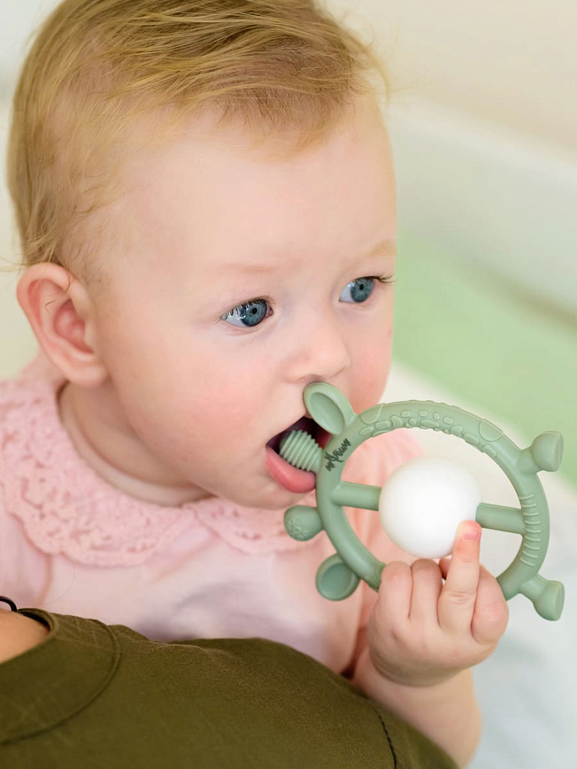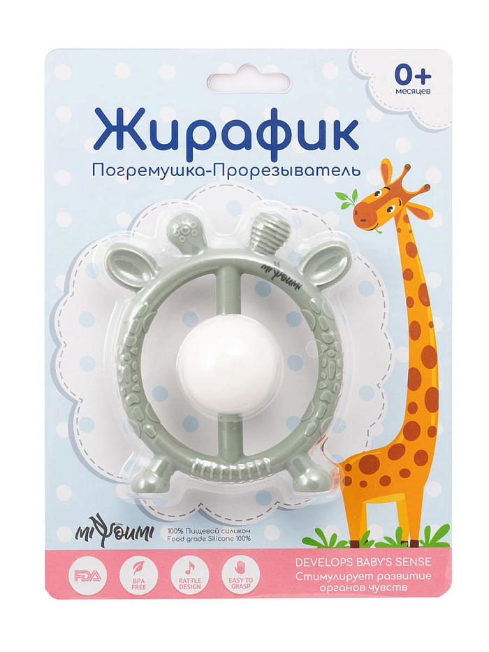 Погремушка - прорезыватель Жирафик 3+м, цв. льняной