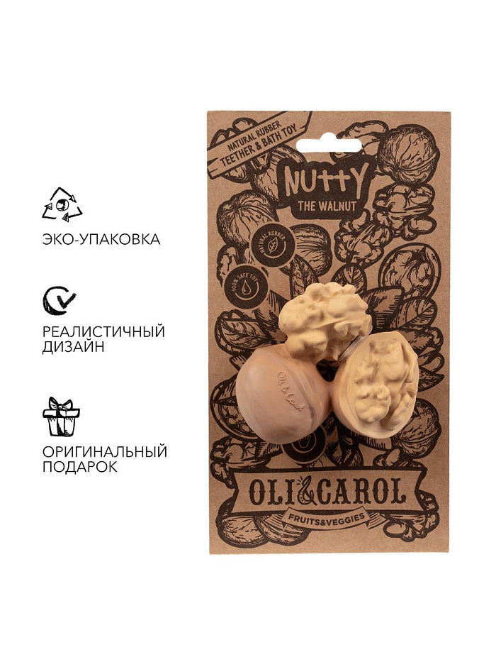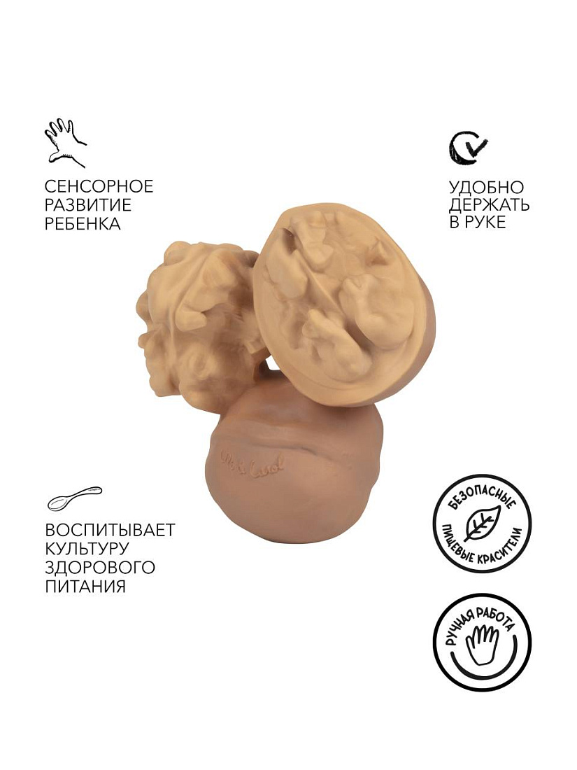 Nutty the Walnut - это грызунок-прорезыватель для зубов из натурального каучука, можно использовать при купании. Каучук очень приятный материал для детских десен.