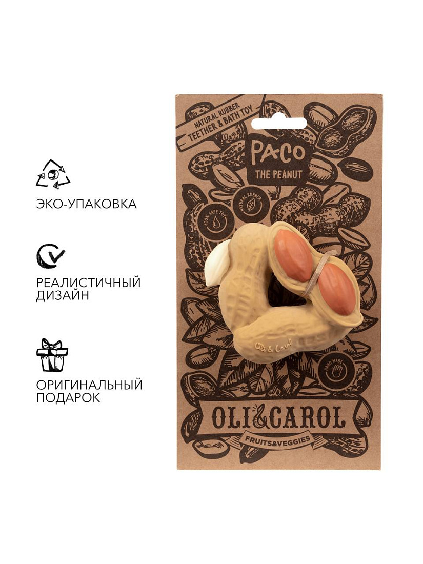 Paco the Peanut - это грызунок-прорезыватель для зубов из натурального каучука, можно использовать при купании. Каучук очень приятный материал для детских десен.