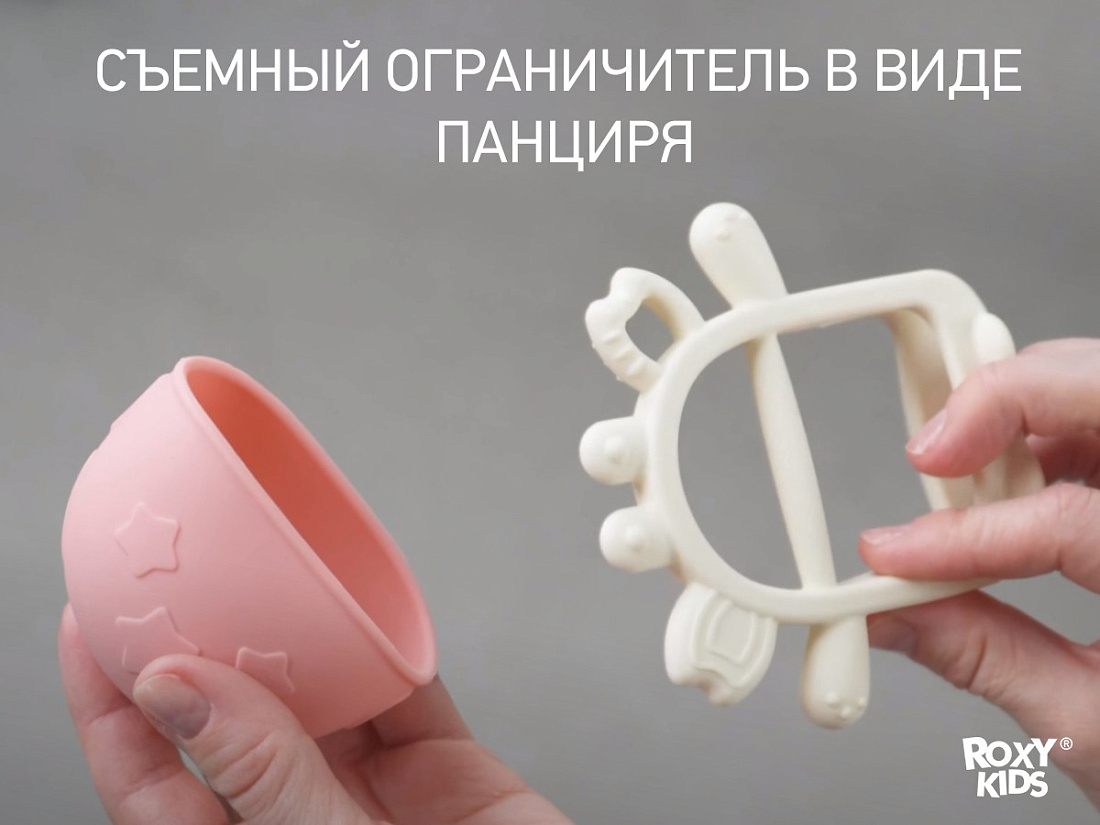 Силиконовый прорезыватель CRABBY от ROXY-KIDS безопасно массирует десны шестью разнообразными рельефными элементами и снимает неприятные ощущения во время прорезывания зубов. Прорезыватель имеет съемный ограничитель в виде панциря краба. Гладкая бархатистая полусфера прорезывателя напоминает малышу мамину грудь. Прорезыватель-браслет надевается на руку малышу, а внутри "панциря" ребенок крепко держит в кулачке держатель-перемычку благодаря хватательному рефлексу, поэтому прорезыватель не падает и не теряется. Использование прорезывателя успокаивает малыша, развивает координацию и моторику рук. Прорезыватель в форме крабика сделан из гипоаллергенного пищевого силикона и подходит для ежедневного использования.
