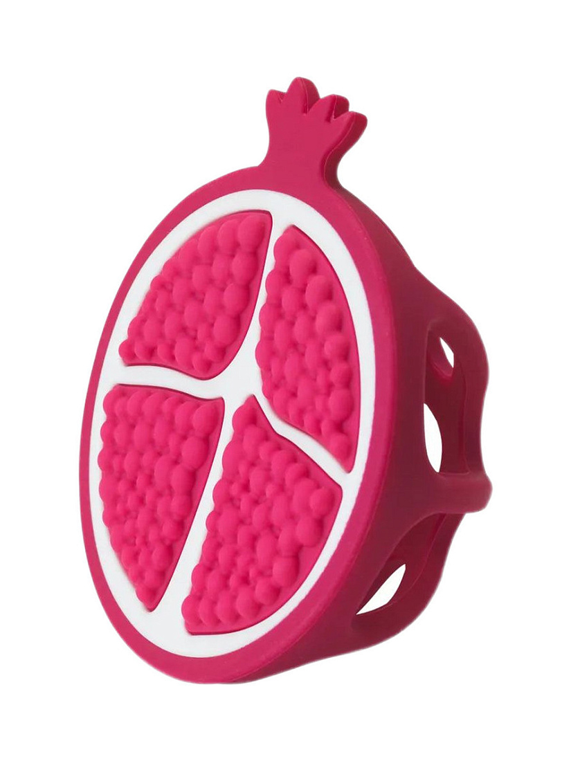 • Прорезыватель сразу привлечет внимание малыша – выполнен в виде половинки граната, с характерным, ярким красным цветом;