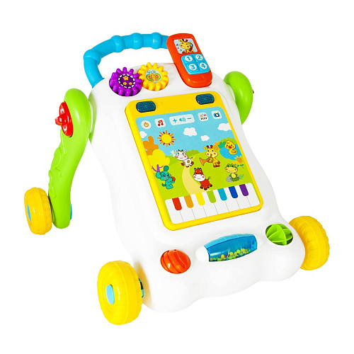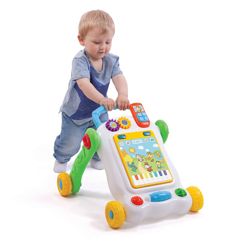Развивающая игрушка Hape «Волшебный ходунок» (E0370_HP) способствует тренировке двигательных навыков и координации движений, а также улучшает логику, усидчивость и ловкость. Опираясь на ручку, ребенок может совершить свои первые шаги по квартире. Изделие оснащено множеством небольших подвижных элементов, имеющих разные цвета и формы. Модель может использоваться в качестве тележки для транспортировки других игрушек.