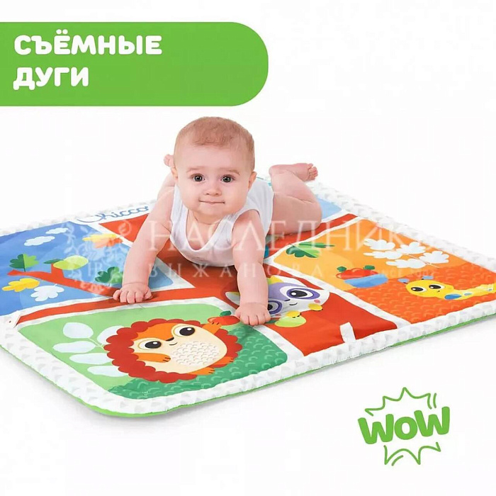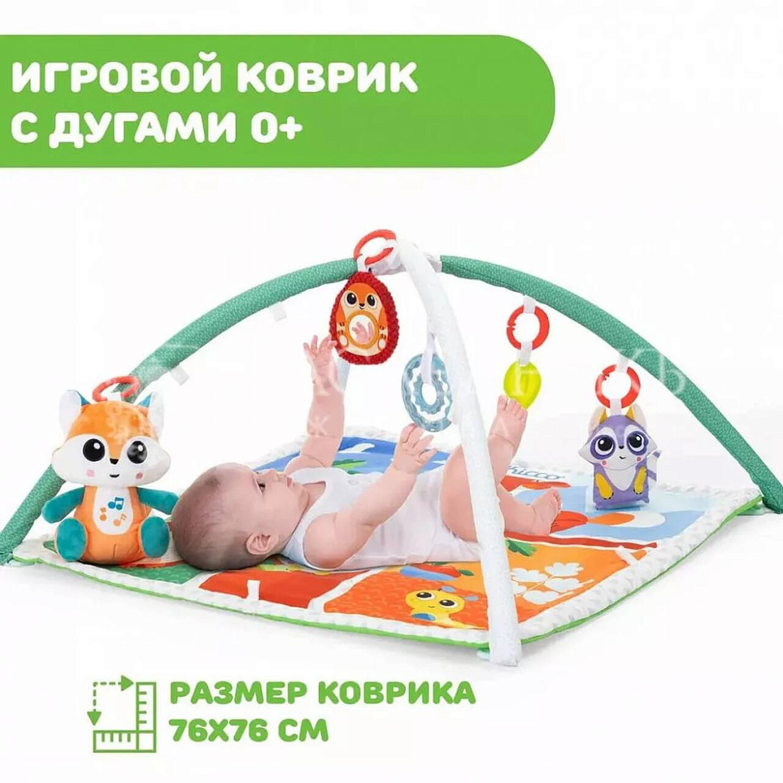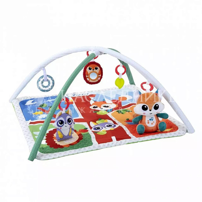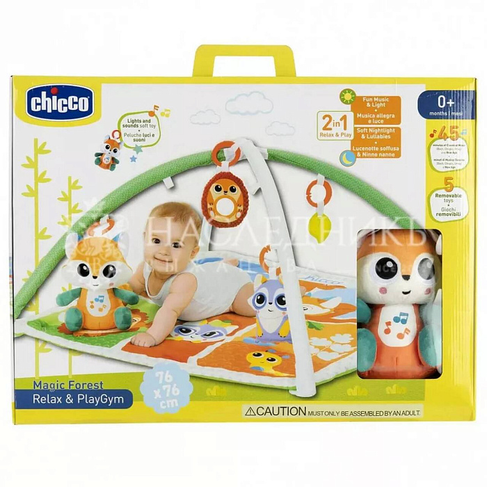 Мягкий развивающий коврик Волшебный лес 0+ с забавными игрушками перенесет малыша в сказочный мир Chicco. 5 съемных тканевых и пластиковых подвесок развлекут, развивая моторные, зрительные и слуховые навыки: Мягкий лисёнок: 45 минут музыки, ночник, регулируемый уровень громкости. Дневной и ночной режим. Мелодии Шопена и New Age. Животик игрушки светится. Енот: мягкая игрушка-подвеска. Ёжик: безопасное зеркальце для визуальных эффектов. Запускай первых солнечных зайчиков! Погремушка с удобной ручкой подойдет даже для самых маленьких. Листик-прорезыватель для первых зубов крохи. Большое пространство для игры 76х76 см, съёмные дуги. Подходит для машинной стирки (без дуг и подвесок). Электронные функции работают от 2 батареек ААА 1,5В (не в комплекте).