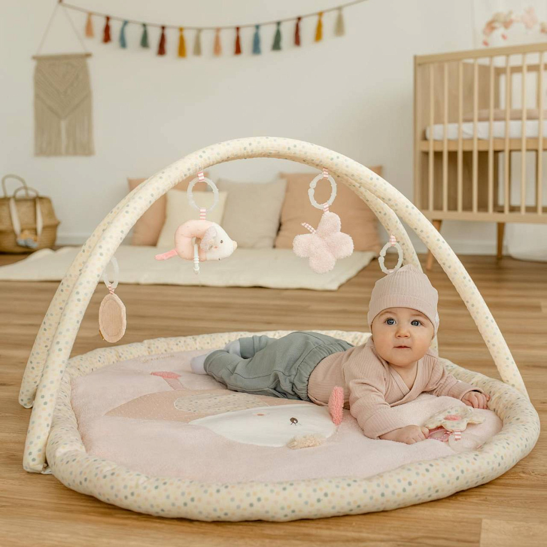 Очаровательный мягкий плюшевый дракон быстро станет любимой игрушкой малыша. Встроенные интерактивные функции в игровой форме развивают сенсорные чувства и мелкую моторику малыша.Спрятанный колокольчик, пищалка, зеркальце, прорезыватель, погремушка и шуршащие элементы пробуждают любопытство — маленькие первооткрыватели с интересом будут изучать разнообразные очаровательные детали игрушки и их функции.Спокойные цвета и приятные на ощупь натуральные материалы делают дракона идеальной мягкой игрушкой для сна.Мягкая игрушка для объятий ночью или товарищ по играм днем — благодаря множеству вариантов использования дракон станет лучшим другом малыша.Благодаря удобному зажиму игрушку можно прикрепить к коляске, автокреслу, игровой дуге или кроватке.