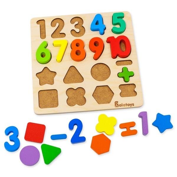 Игрушка состоит из прочной основы с выемками, куда можно вставлять не только цифры, но и шесть фигур разных форм и цветов. Каждая фигура имеет уникальный дизайн, что помогает детям изучать геометрические формы и их свойства.