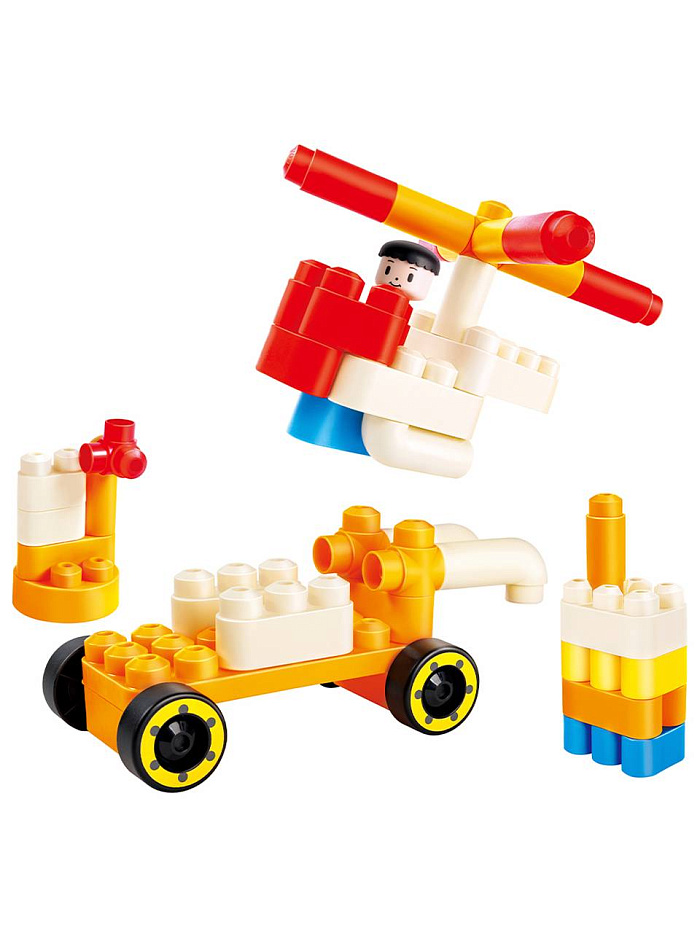 Комплектация: 1 машинка, 100 строительных блоков, 5 наклеек.