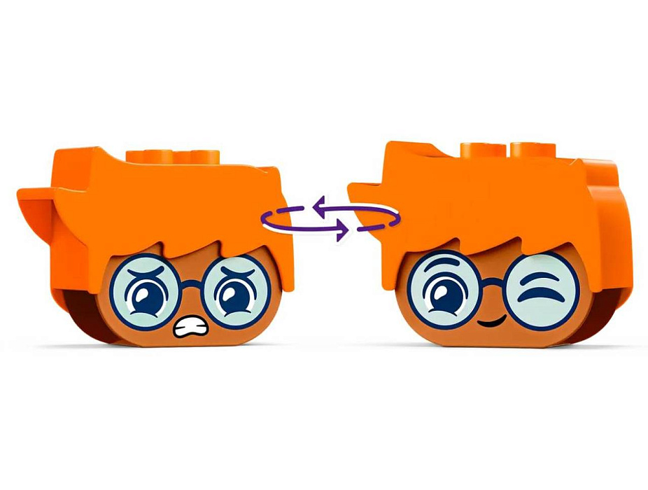 В наборе 71 блок и элемент, из которых можно построить пять персонажей, в том числе пять блоков с волосами и одну основу с колесами. Смешивая и подбирая игрушечные тела, ноги, лица и волосы, малыши дадут волю своему воображению и создадут бесконечное количество дружелюбных персонажей. С помощью 10 различных блоков с лицами дети могут выразить то, что чувствуют их персонажи, и описать, что означают эти эмоции. Набор также является прекрасной возможностью для взрослых завести разговор с детьми о том, что люди отличаются друг от друга и это здорово!