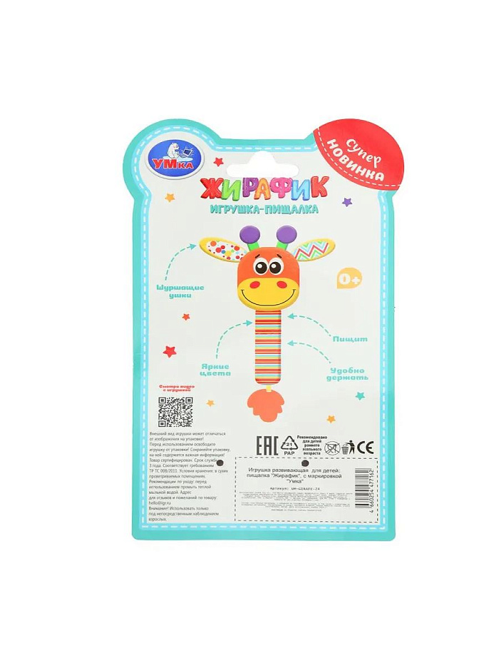 Погремушка - пищалка жираф на блист. Умка