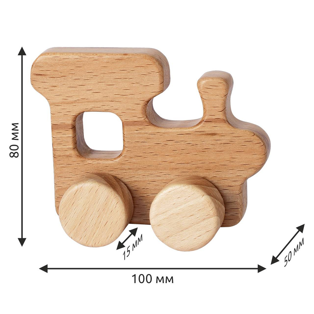 Деревянная игрушка-каталка «Паровозик», цв. натуральный