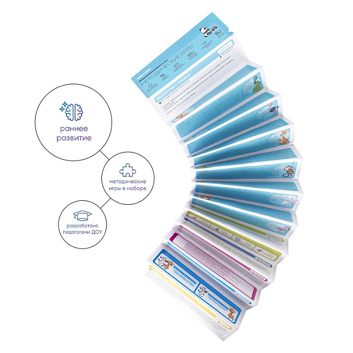 Этот набор состоит из 9 предметов. В комплект входит методическое пособие, разработанное педагогами дошкольного образования. Рекомендовано детям от 1 года, сертифицировано в категории «товары для малышей до 3-х лет».