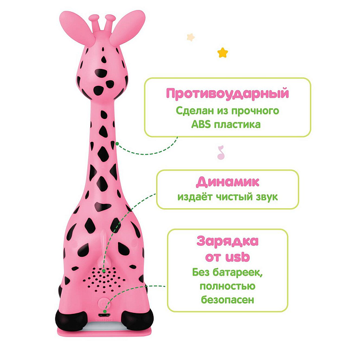 Режутся зубки? Мягкие силиконовые ушки-грызунки облегчат прорезывание зубов у малыша. Успокоить и уложить спать ребенка теперь легко: включите белый шум, который длится беспрерывно, более двух часов. А благодаря ночнику, который переливается разными цветами, оставаться одному в кроватке спокойно и уютно.