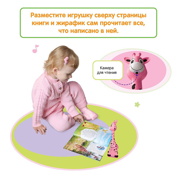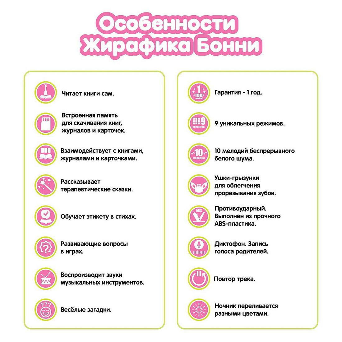 Интерактивная развивающая игрушка Жирафик Бонни сам прочитает всё, что написано на страницах книг, журналов, карточек, достаточно только разместить игрушку сверху страницы.