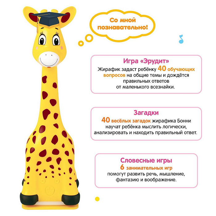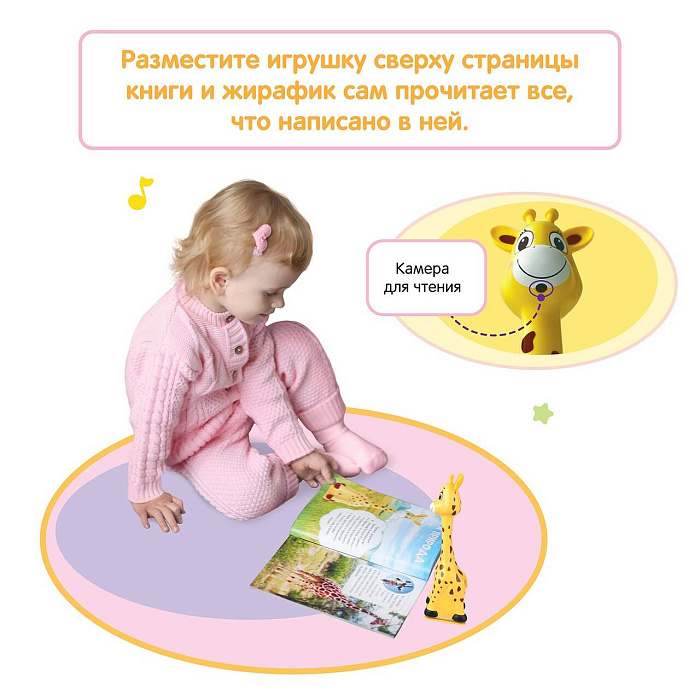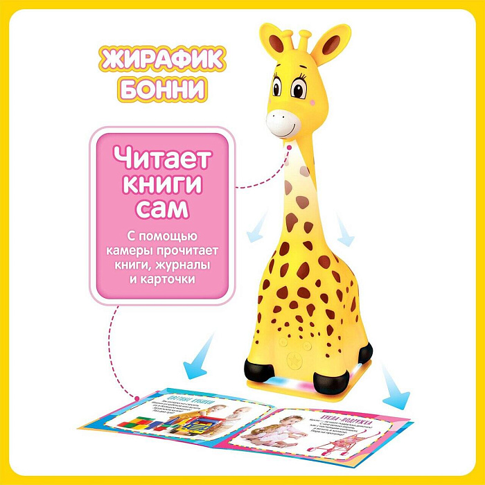Интерактивная развивающая игрушка Жирафик Бонни сам прочитает всё, что написано на страницах книг, журналов, карточек, достаточно только разместить игрушку сверху страницы.