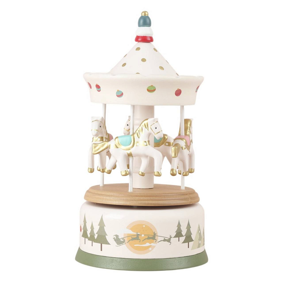 Музыкальная карусель Happy Horses. Подарите малышу волшебные моменты перед сном с нашей очаровательной каруселью. Нежная, успокаивающая мелодия расслабляет и помогает легко и быстро уснуть. Карусель способствует развитию музыкального слуха и вкуса. Изготовлена из натурального дерева, имеет безопасные скругленные края и надежную конструкцию. Простой механизм запускается одним движением руки. Карусель плавно вращается по кругу, создавая магическую атмосферу. Работает без батареек. Лаконичный дизайн прекрасно дополнит интерьер детской комнаты. Карусель Happy Horses – это не только полезный аксессуар, но и трогательный подарок на праздник.