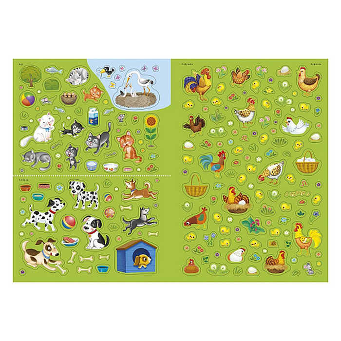 Робинс Книга с наклейками Домашние животные 600 наклеек - это обучающая книга для детей от 3-х лет с вкладышами-наклейками внутри. Ваш малыш любит клеить наклейки, и ему нужен простор для воображения? Мы придумали книгу как раз для него! В ней вы найдёте 11 ярких тематических фонов о жизни домашних животных: