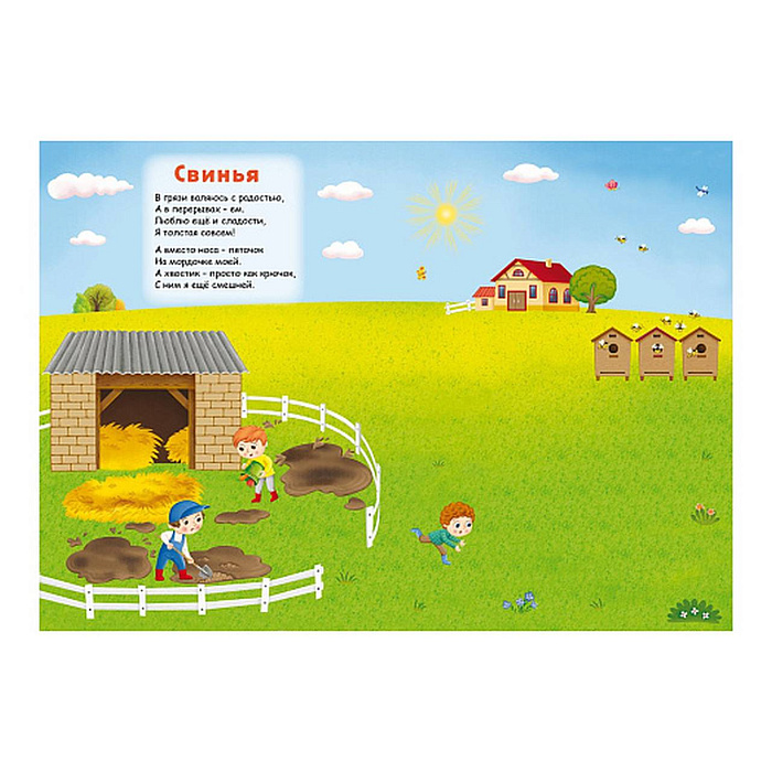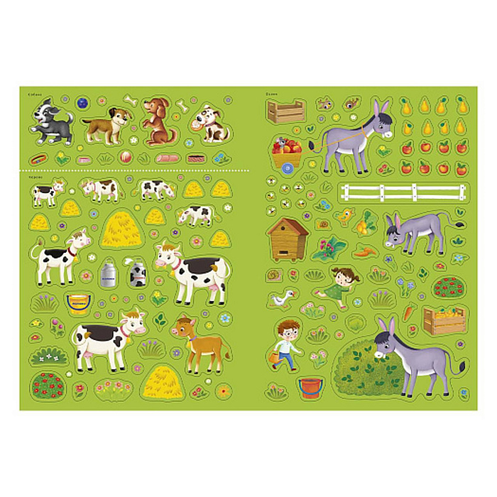 Более 600 красочных наклеек, которые помогут ребенку создавать собственные картины и познакомят с обитателями домашнего хозяйства, а также 12 веселых стихов-загадок для развития речи и кругозора. Приклеивайте наклейки, читайте загадки и проводите время с пользой!