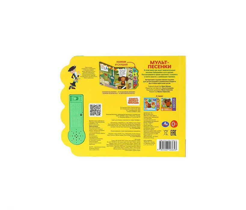 Музыкальная книга «Мульт-песенки» ТМ «УМка» станет прекрасным подарком для маленьких поклонников известного мультфильма студии «Союзмультфильм»: