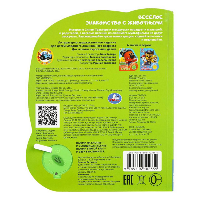 Музыкальная книга «Синий Трактор. Весёлое знакомство с животными» ТМ «УМка» станет прекрасным подарком для малыша: