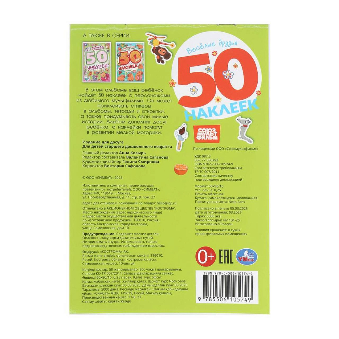 Весёлые друзья. Чебурашка Золотая коллекция. 50 наклеек Умка