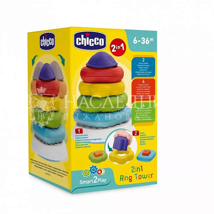 Детская пирамидка сортировщик Chicco Ring Tower отлично подойдет мальчикам и девочкам с 6 месяцев. Игрушка из линейки Smart2Play способствует развитию логики, когнитивных и зрительно-моторных навыков. Пирамидка сортировщик имеет 2 режима игры: 1. Складывай и учись. Малышу необходимо нанизывать кольца в правильном порядке: от большего к меньшему. Выучите с малышом названия цветов. 2. Сортер: 4 формы различных цветов, которые нужно вставить в правильный паз. Качающееся основание сделает игру еще интереснее! Детская игрушка способствует развитию тактильных и моторных навыков, которые чрезвычайно важны для развития навыков письма.