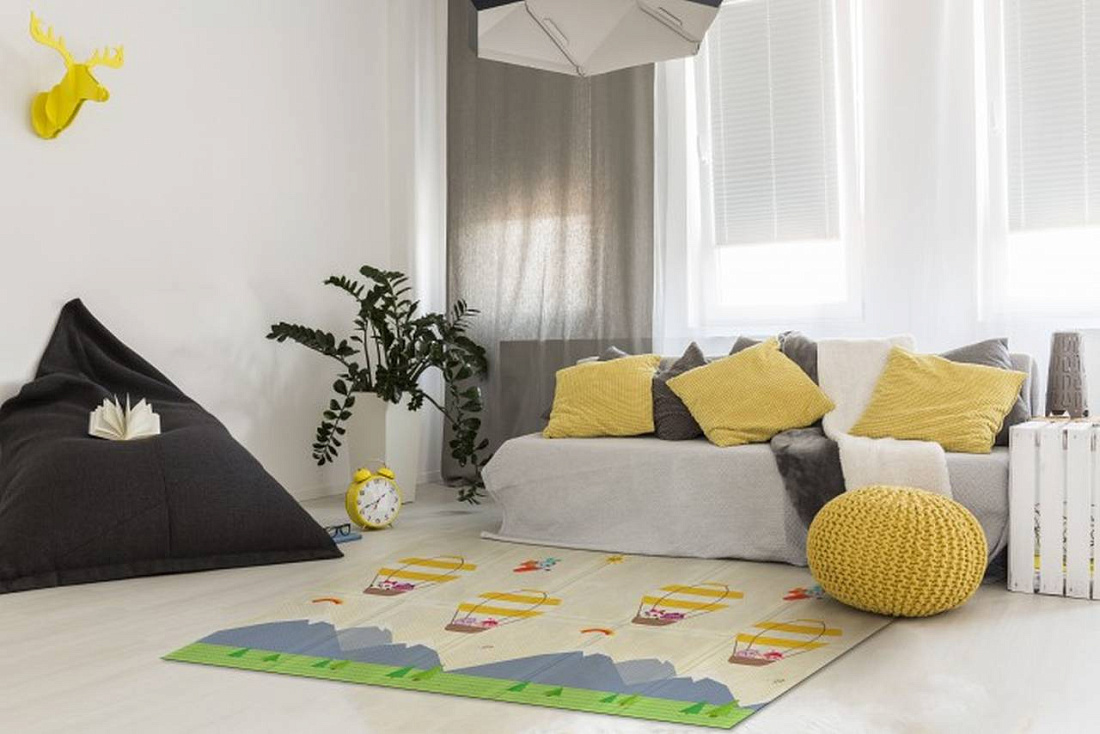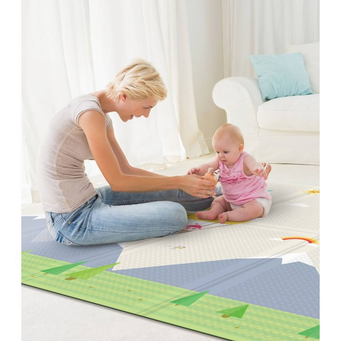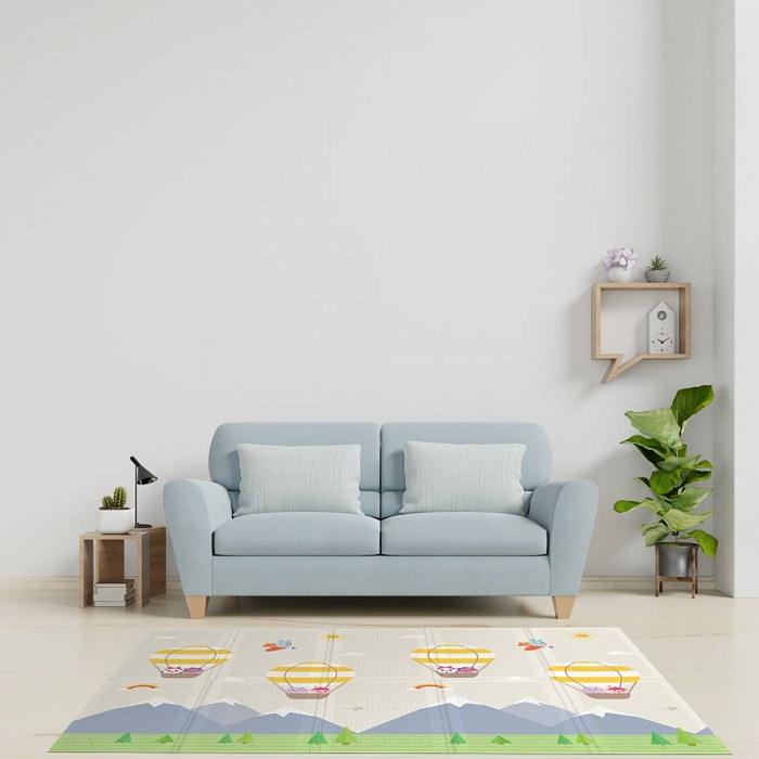 В основе изделия лежит особый гипоаллергенный пищевой полиэтилен, который совершенно безопасен для детей. Материал не выделяет вредных летучих веществ, в том числе и при нагревании. Размеры коврика составляют 140 х 200 х 1 см.