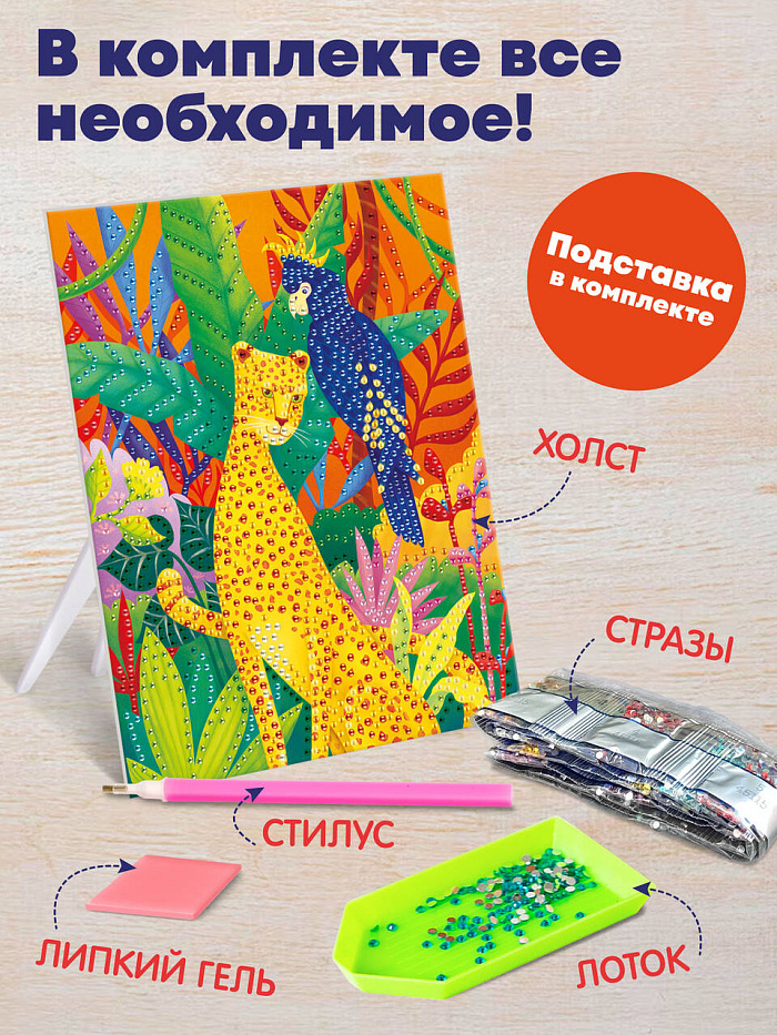 Ребенку предстоит перенести стразы при помощи стилуса на картонную основу по заданной схеме. Готовая картина с переливающимися на свету стразами украсит интерьер любой детской комнаты!