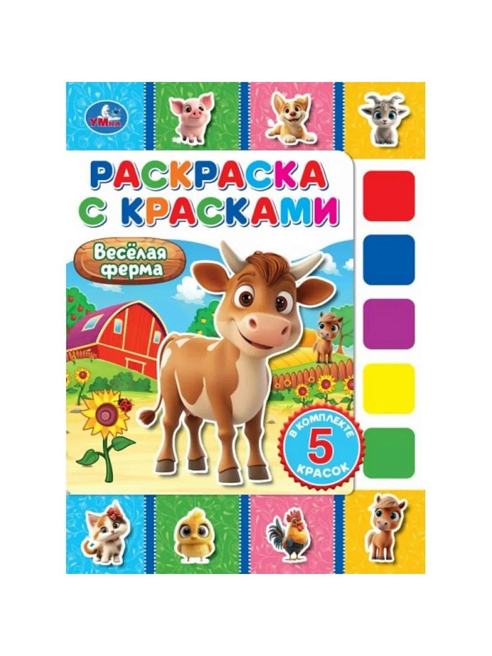 Раскраска с красками «Весёлая ферма» ТМ «УМка» непременно понравится маленькому художнику: