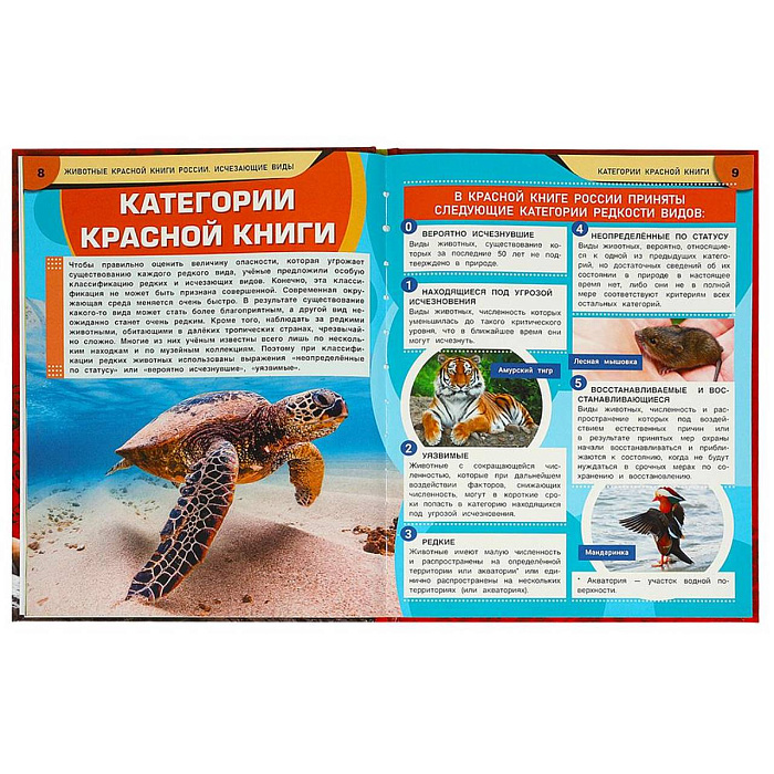 На страницах этой занимательной энциклопедии юный читатель найдёт яркие фотографии и интересные факты о более чем 50 животных, находящихся под угрозой вымирания и потому занесённых в Красную книгу России. В настоящее время Красная книга насчитывает свыше 440 видов животных, численность которых в нашей стране вызывает опасения и нуждается в особой охране человеком.
