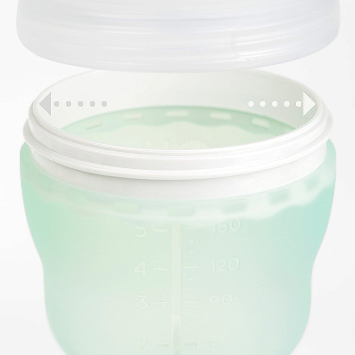 - Мягкая текстура и форма бутылочки позволяют ребенку и родителям надежно и удобно держать ее в руке;