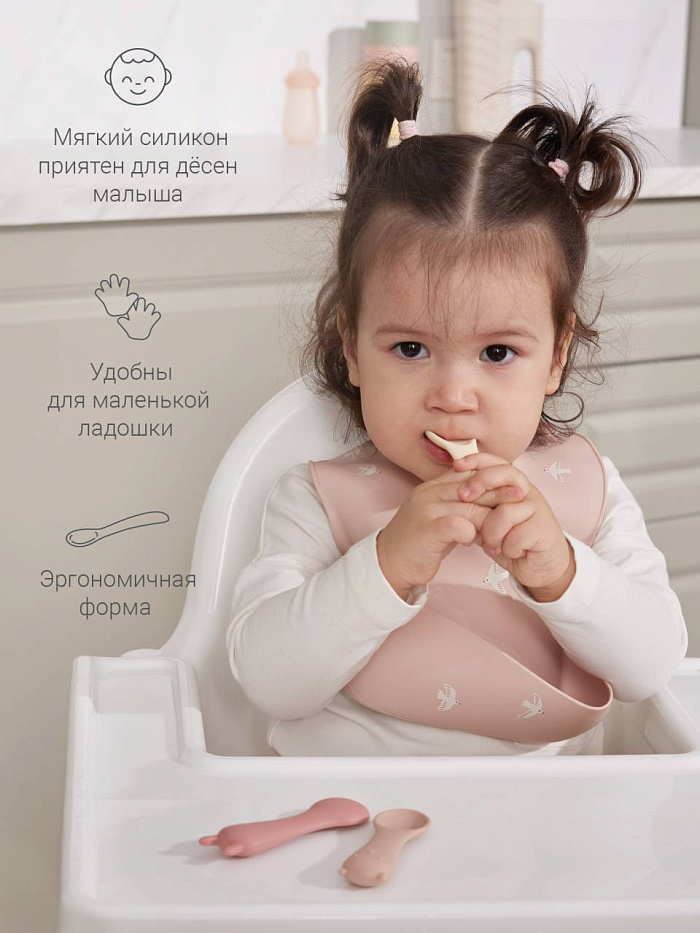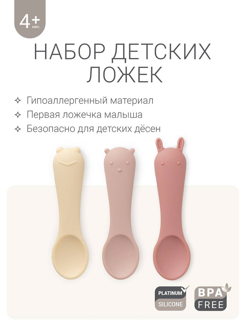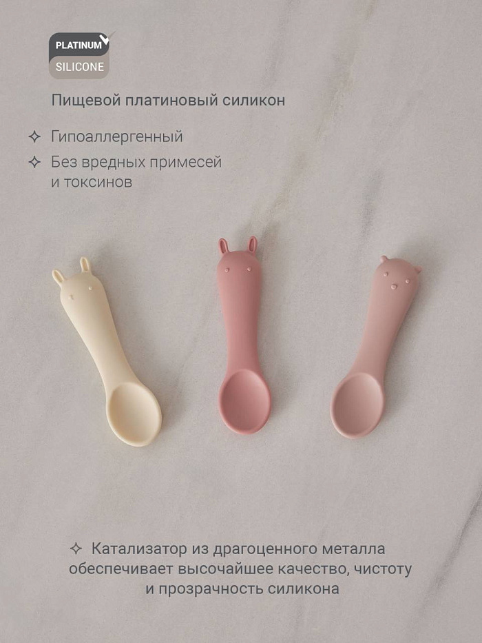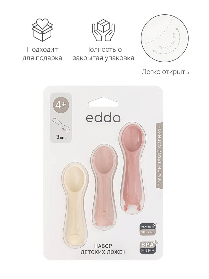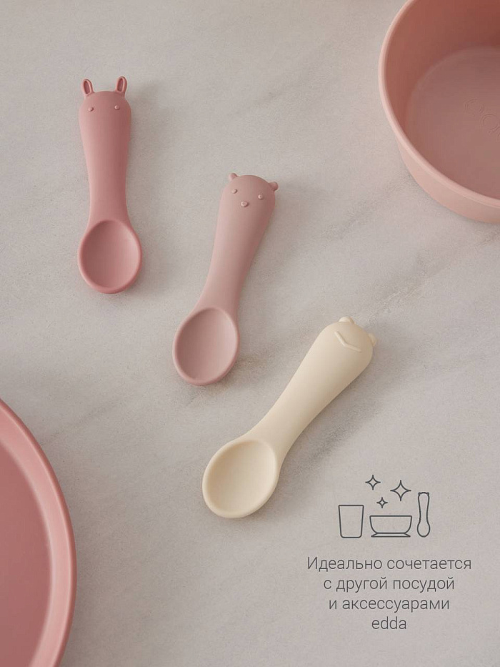 Набор детских силиконовых ложек edda, 3 шт, цв. пудра