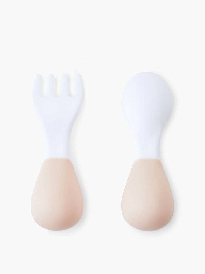 Набор детских столовых приборов (ложка+вилка), цв. white&beige