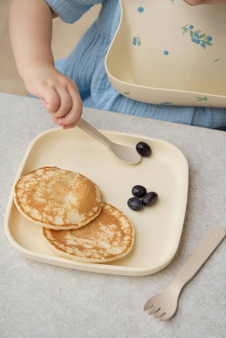 Благодаря выверенной высоте бортиков еда не окажется на полу и ребёнку не будет слишком высоко. Увеличенный размер и надёжность позволяют использовать посуду долго, даже когда малыш подрастёт и ему понадобятся порции больше. Тарелки лёгкие, и их удобно держать одной рукой, что очень помогает родителям. Эргономичная форма делает тарелки edda практичными; они приятны на ощупь и устойчивы.