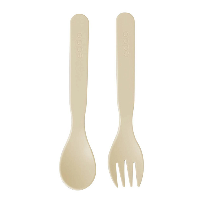 из пищевого биопластика на основе кукурузного крахмала и сахарного тростника. Лёгкие ложка и вилка без острых краёв и зубчиков, с приятной матовой поверхностью — первые «взрослые» приборы малыша. Приборы эргономичны, разработаны специально для детской ладошки и не скользят. Лёгкие и удобные приборы выполнены в нежных, поэтичных оттенках и прекрасно сочетаются со всеми предметами посуды edda.