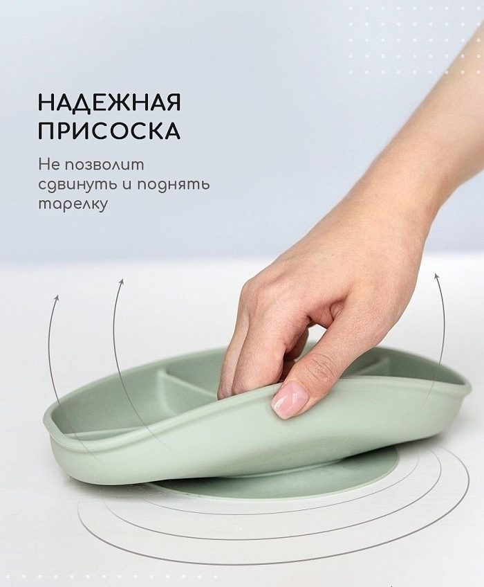 Тарелка на присоске секционная, цв. фисташковый