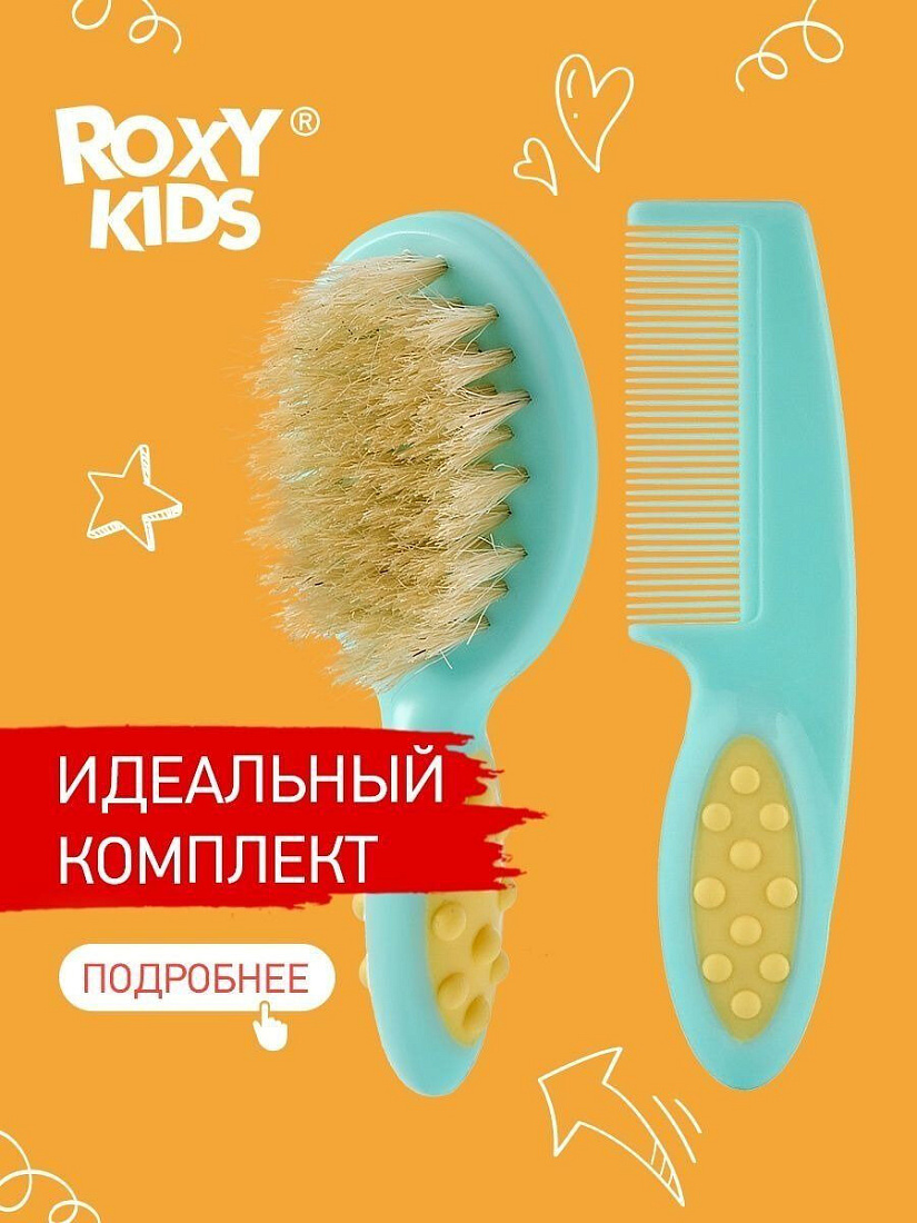 Комплект из гребешка и щетки от ROXY-KIDS обязательно пригодится родителям детей первых лет жизни. C помощью расчески с частыми, но не острыми зубчиками удобно расчесывать запутавшиеся и скатавшиеся волосы, а с помощью мягкой натуральной щетки можно пригладить их и придать аккуратный вид. Она также пригодится для массажа кожи головы. Набор для расчесывания ROXY-KIDS отличает элегантный дизайн, прочность и экологичность материалов, соответствие всем нормам, предъявляемым к предметам ухода за маленькими детьми. Карапуз останется доволен, а родители смогут получить максимум радости от тактильного общения со своим малышом. Расческа и щетка отлично дополняют друг друга, и в дальнейшем с их помощью вы сможете научить ребенка причесываться самостоятельно!