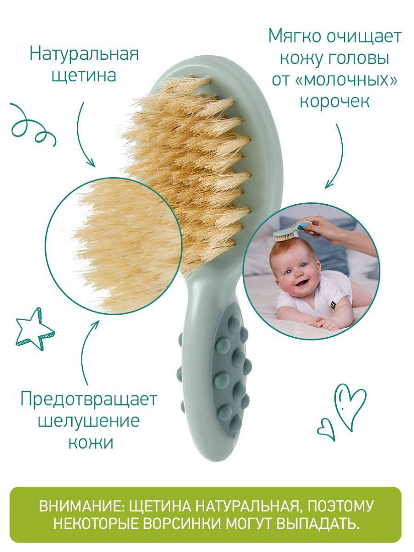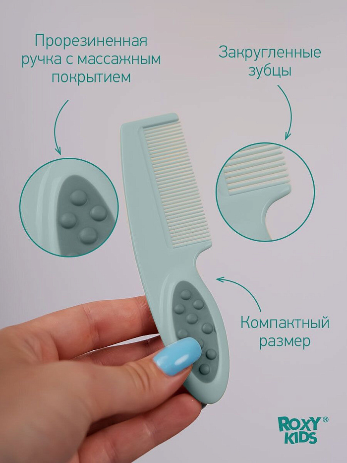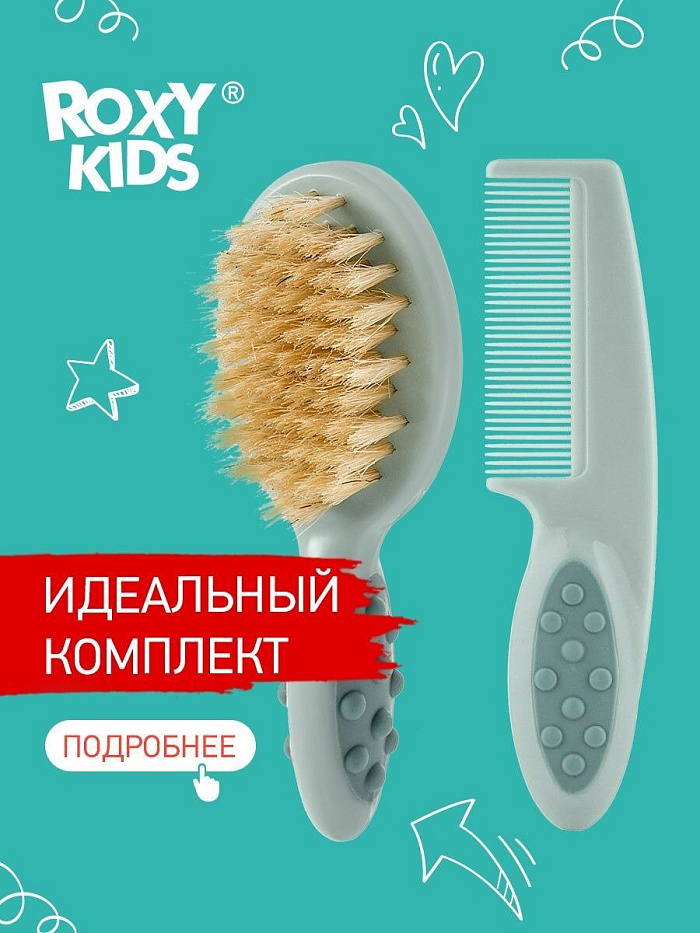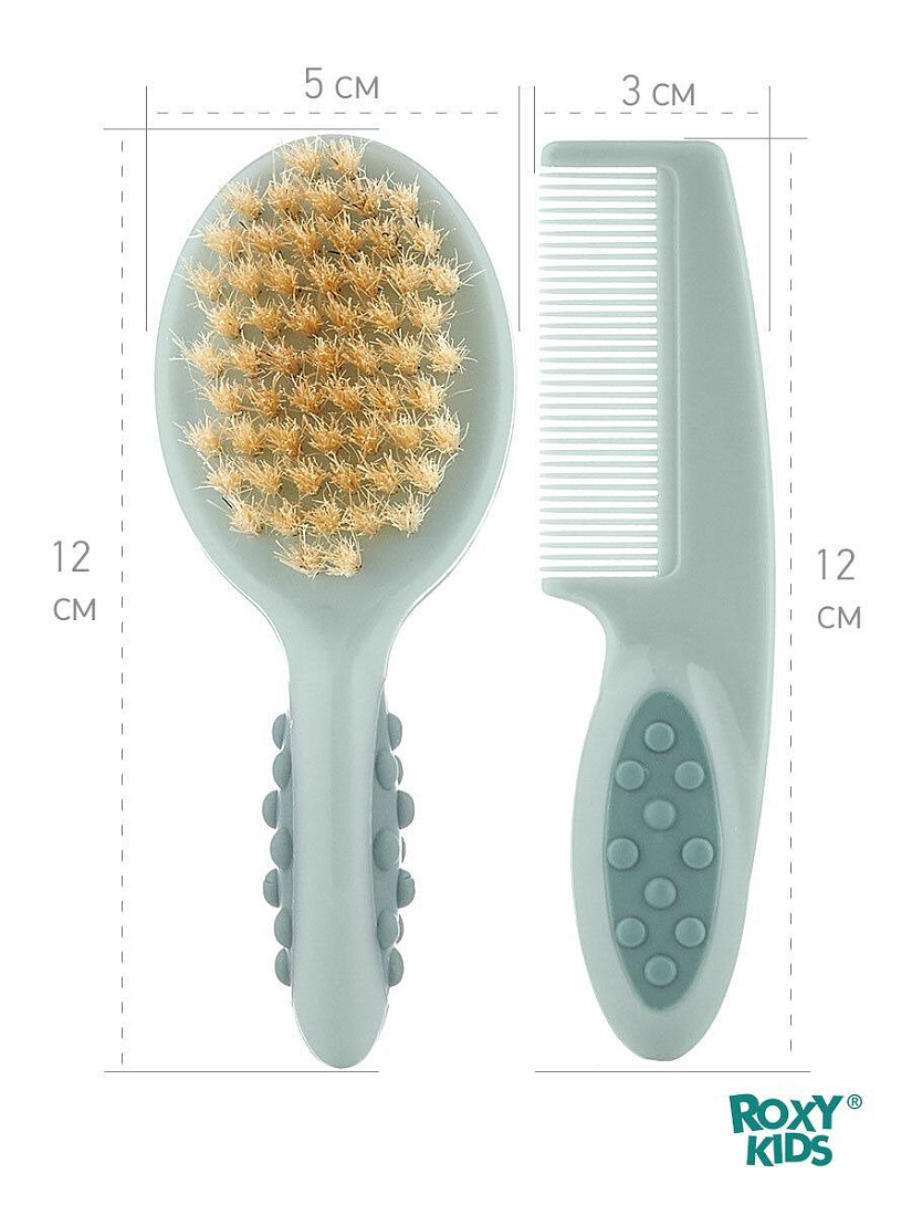 Комплект из гребешка и щетки от ROXY-KIDS обязательно пригодится родителям детей первых лет жизни. C помощью расчески с частыми, но не острыми зубчиками удобно расчесывать запутавшиеся и скатавшиеся волосы, а с помощью мягкой натуральной щетки можно пригладить их и придать аккуратный вид. Она также пригодится для массажа кожи головы. Набор для расчесывания ROXY-KIDS отличает элегантный дизайн, прочность и экологичность материалов, соответствие всем нормам, предъявляемым к предметам ухода за маленькими детьми. Карапуз останется доволен, а родители смогут получить максимум радости от тактильного общения со своим малышом. Расческа и щетка отлично дополняют друг друга, и в дальнейшем с их помощью вы сможете научить ребенка причесываться самостоятельно!