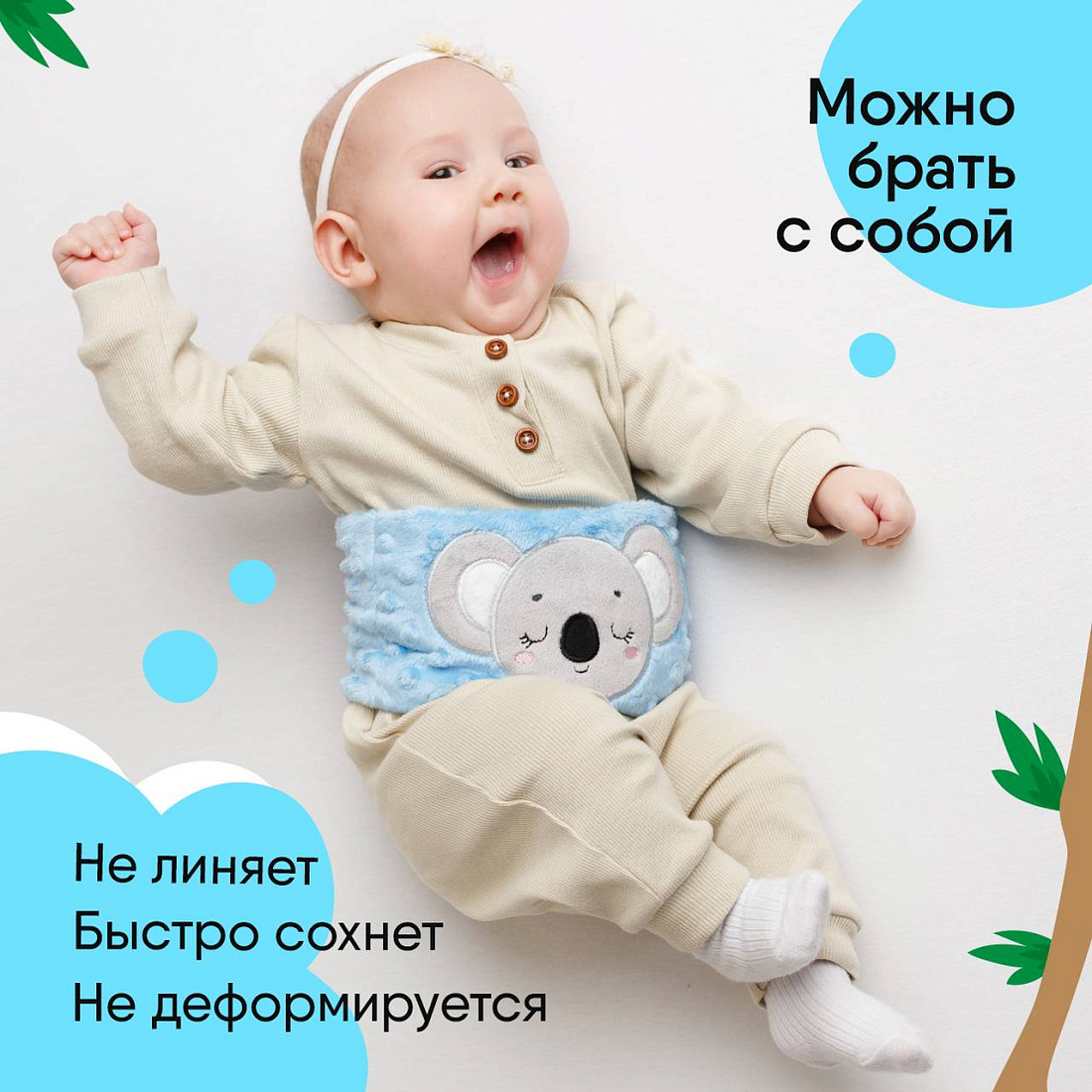 Грелка для новорожденных это надежный помощник для родителей в лечении коликов и первая развивающая игрушка малыша. Согревающий поясок выполнен из нежного трикотажа, который не раздражает кожу ребенка.