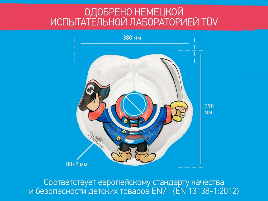 Плавательный круг для купания младенцев Flipper изготовлен из безопасного гипоаллергенного материала. Его применение позволяет развить плавательный рефлекс ребенка, а также улучшает тонус его мышц и поднимает настроение как малышу, так и его родителям. Этот яркий круг с изображением Пирата позволит сделать отличные снимки для семейного фотоальбома. Flipper Пират рассчитан на использование детьми, вес которых не превышает 18 кг, и имеет следующие особенности: