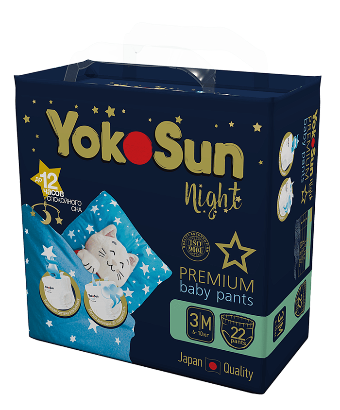 Ночные подгузники-трусики YokoSun Premium, M (6-10 кг), 22 шт