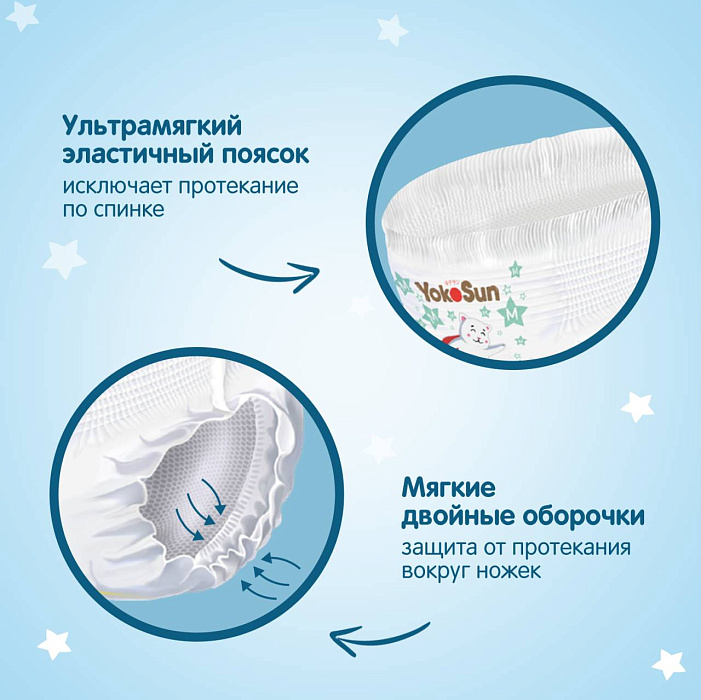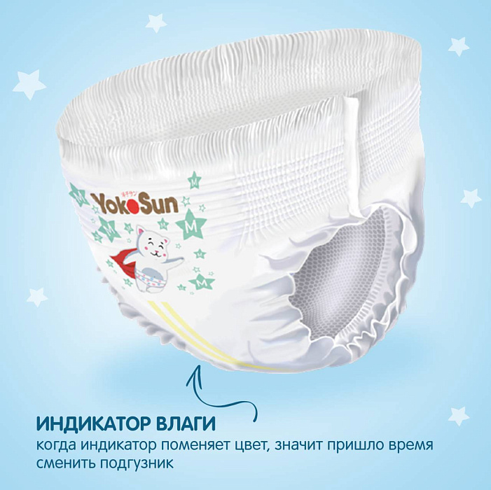 YokoSun Подгузники-Трусики Premium L (9-14 кг) 44 шт. – это новая линейка полюбившихся многим родителям. Они отвечают всем требованиям современных мам и дарят до 12 часов спокойного сна.