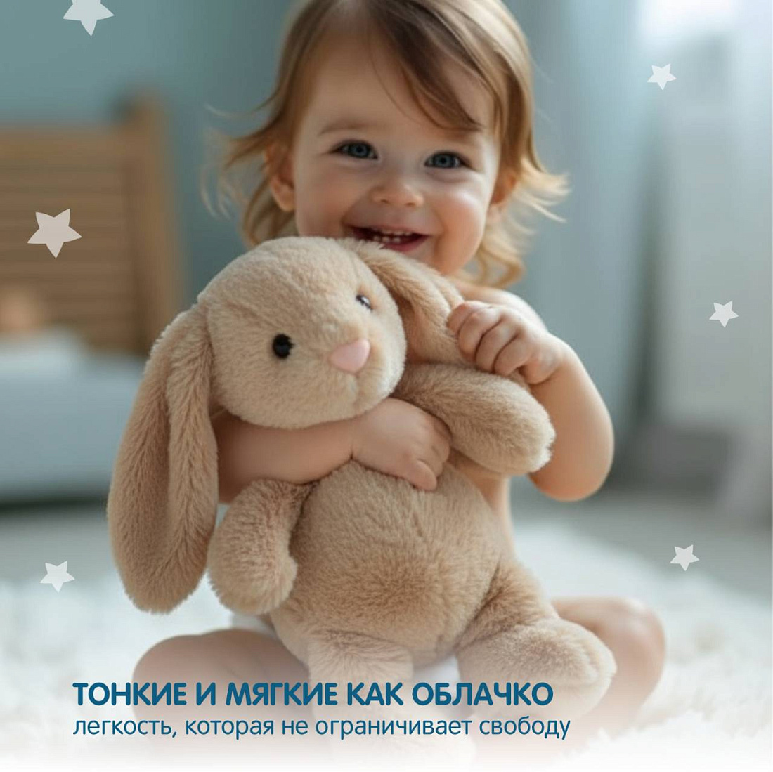 - Новый двойной дышащий нижний слой моментально распределяет влагу внутри и не дает ей слеживаться, бережно защищает кожу малыша от возникновения раздражений, оставляя ее сухой и чистой