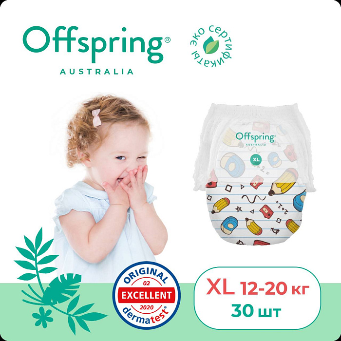 - Offspring - тонкие, мягкие и ультравпитываюшие подгузники-трусики без хлора