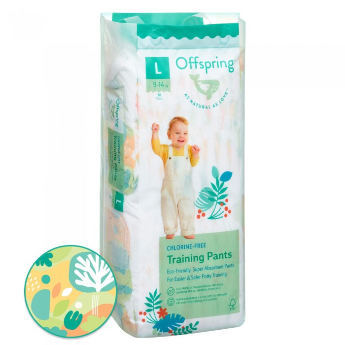 - Offspring - безопасные подгузники-трусики, потому что не содержат хлора, парабенов, латекса, фталатов, тяжелых металлов, отдушек и лосьонов