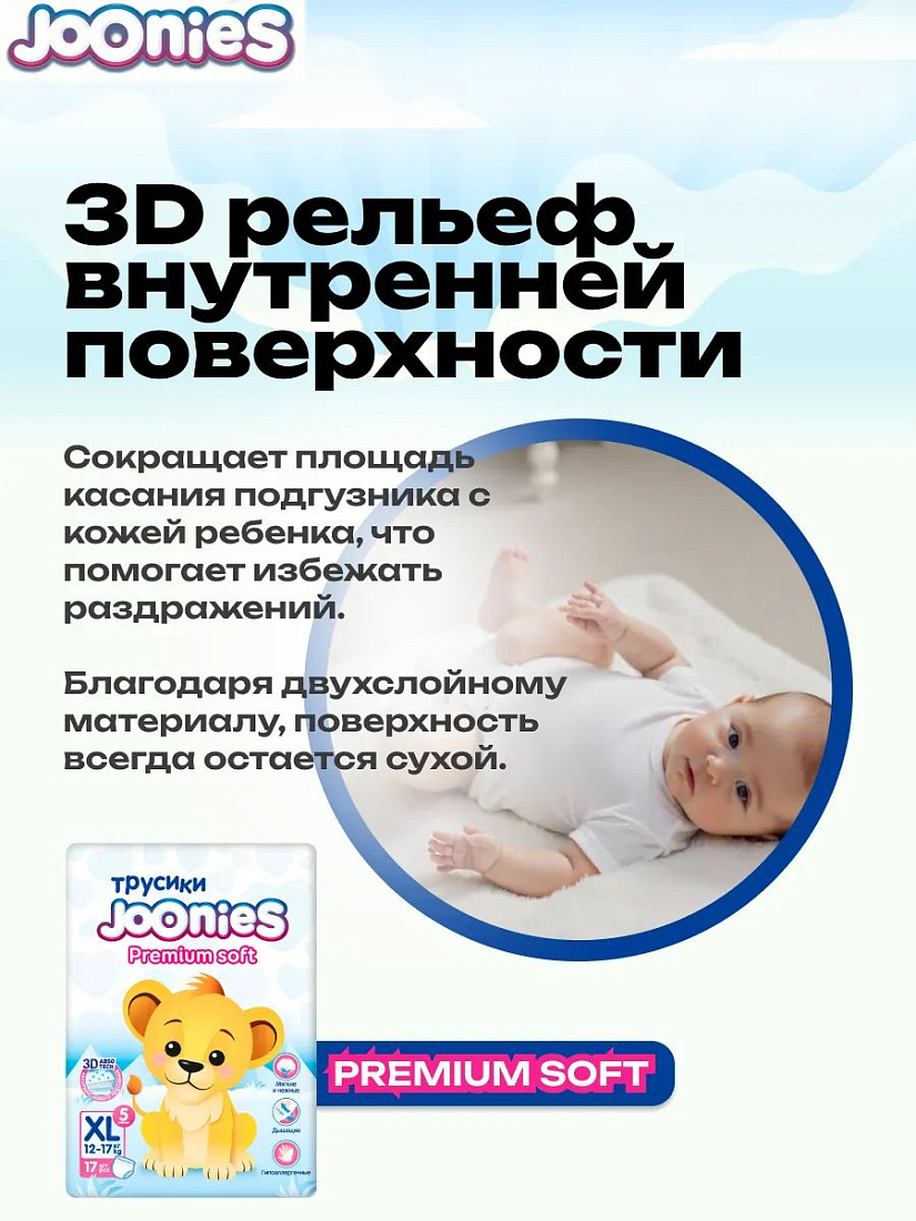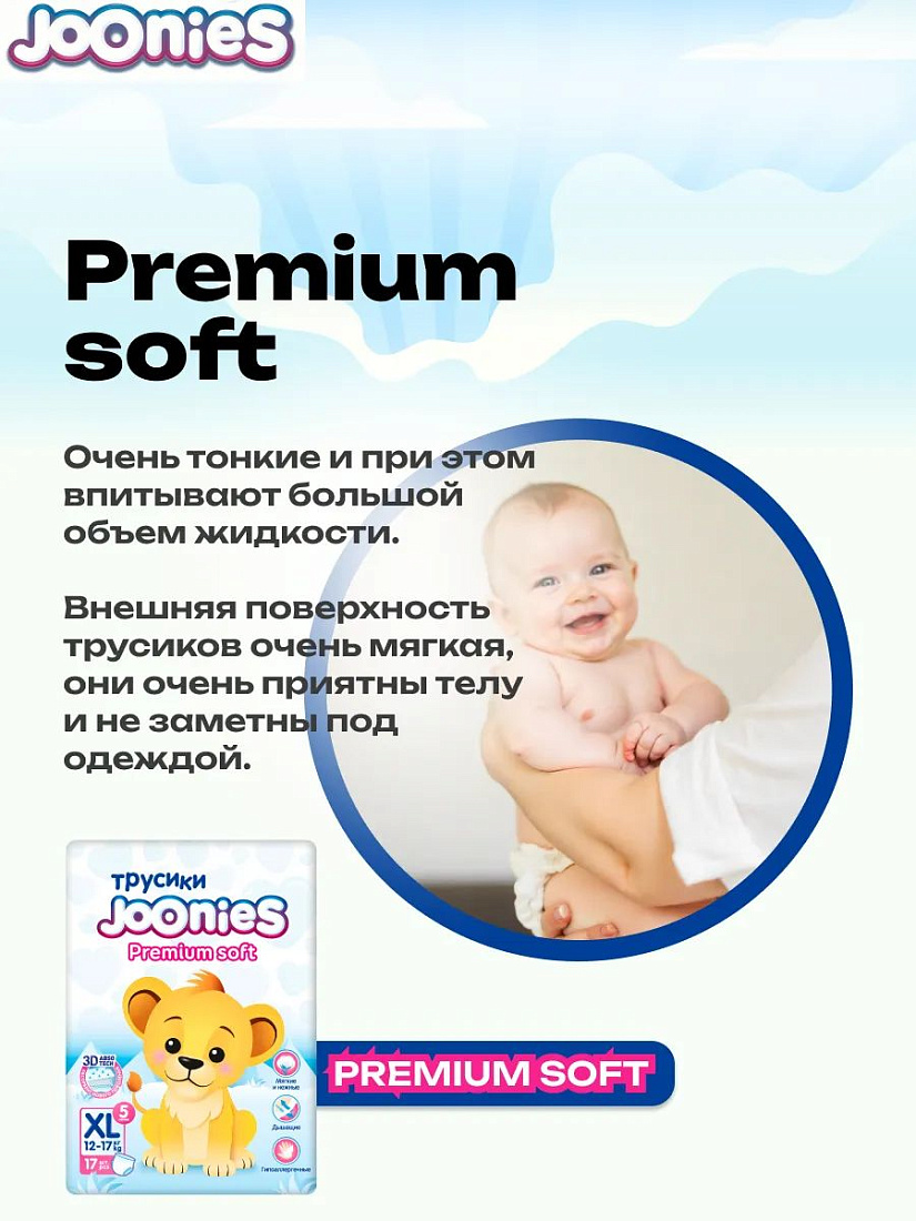 Подгузники-трусики Premium Soft JOONIES XL (12-17 кг) 17 шт.
