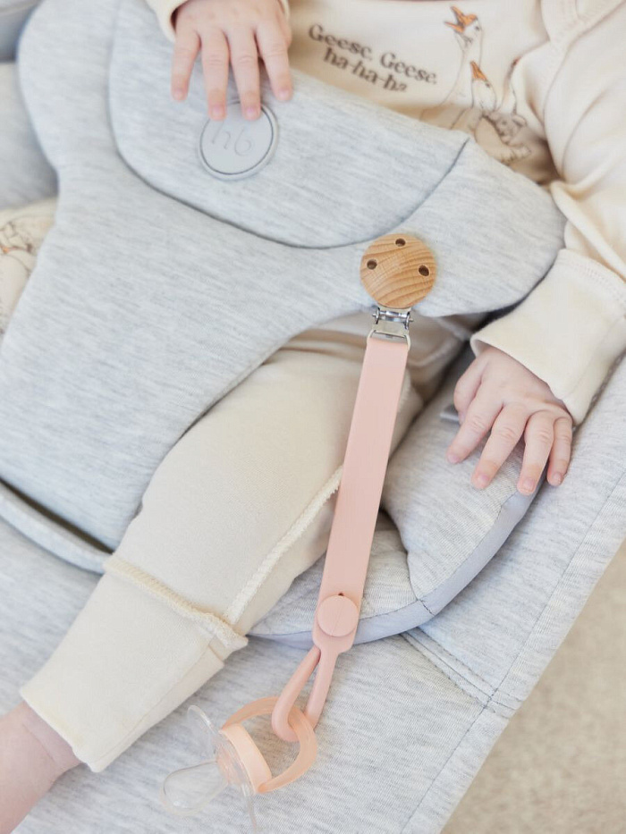 Стильный держатель на страже гигиены и здоровья малыша. Теперь вы можете быть уверены, что пустышка или прорезыватель не потеряются и останутся чистыми. Ремешок из мягкого силикона безопасно и приятно грызть. Металлическая клипса с деревянной защитной насадкой надёжно крепится и красиво выглядит. Незаменимая вещь для ежедневных прогулок и длительных поездок.