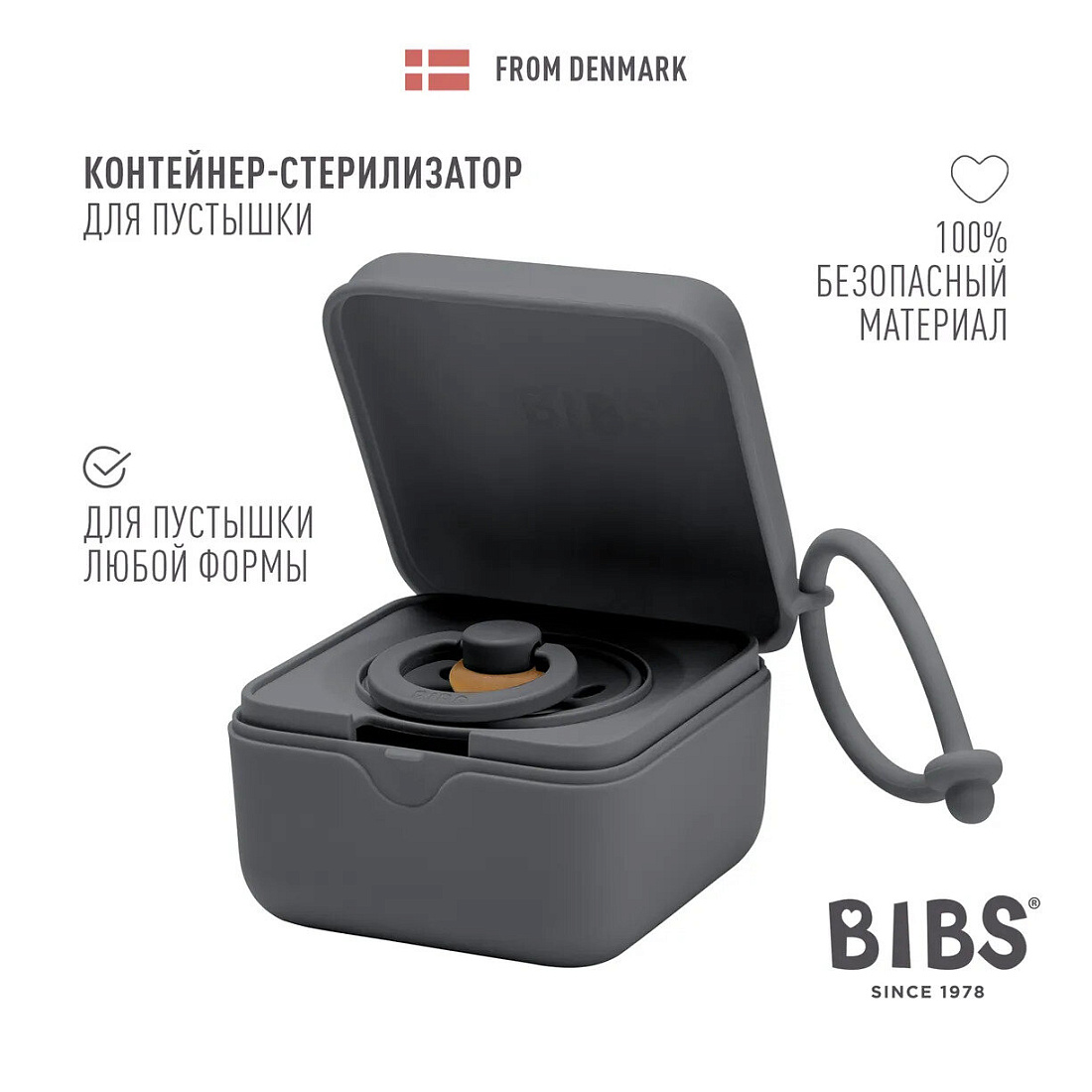 Контейнер для пустышки Bibs, цв. Iron