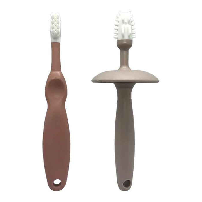 Набор зубных щеток-прорезывателей предназначен для комфортного и безопасного ухода за полостью рта ребенка с первых месяцев жизни. Подходит для массирования раздраженных десен и чистки первых зубов. Ограничитель защищает малыша от заглатывания, снимается при необходимости. Рельефная поверхность обеспечивает бережный массаж десен. Элементы разной степени жесткости, мягкий массажер и более жесткий ограничитель. Ребенок сам выбирает, какой элемент ему нравится грызть. Удобно хранить на присоске на различных поверхностях. Массажеры легкие и удобно ложатся в маленькую детскую ручку. Ребенок самостоятельно держит грызунок, мелкая моторика развивается быстрее. Ручка удобна и для взрослых, которые захотят почистить малышу его первые зубки. Прорезыватели просты в уходе, не скапливают на себе пыль, достаточно промыть теплой водой. Набор сертифицирован, материал гипоаллергенен и безопасен для детей.